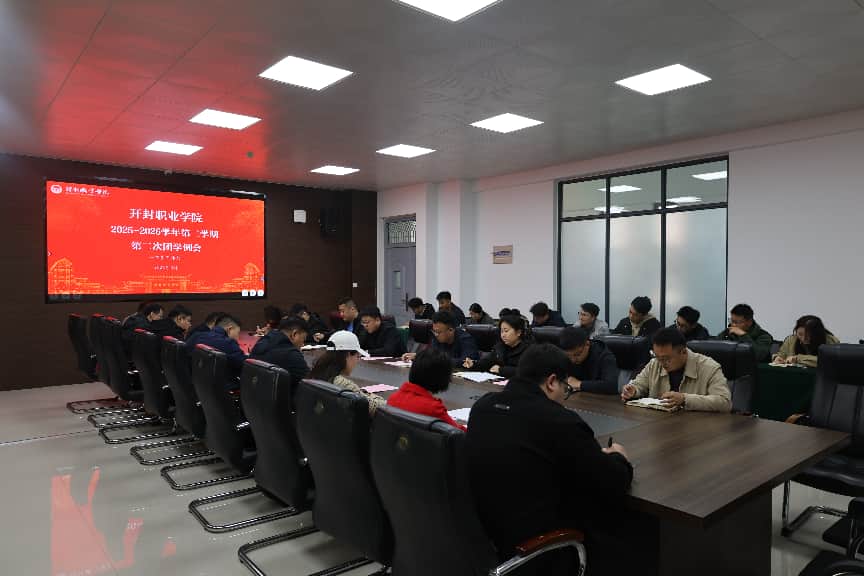 3月25日上午,开封职业学院2025-2026学年第二学期第二次团学例会在毕昇楼311会议室顺利召开。学校党委副书记、副校长马纪岗出席会议并讲话,学生处处长黄宏川主持会议,学生处、校团委科级以上干部、各学院党总支副书记、团总支书记及全体团学骨干参会。